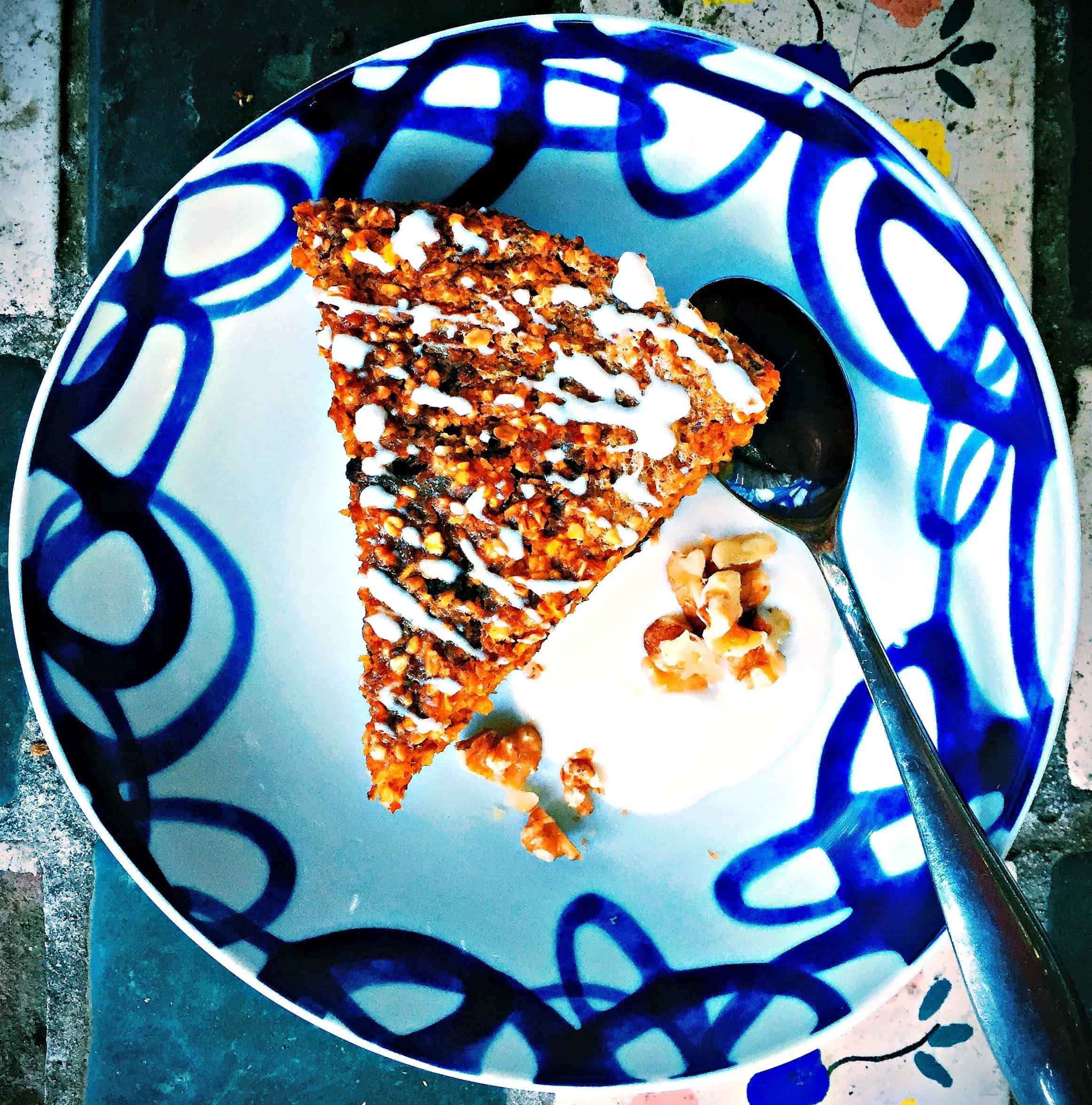 - Let sit 10 minutes before cutting into slices and serving up with some maple-yoghurt and crushed walnuts