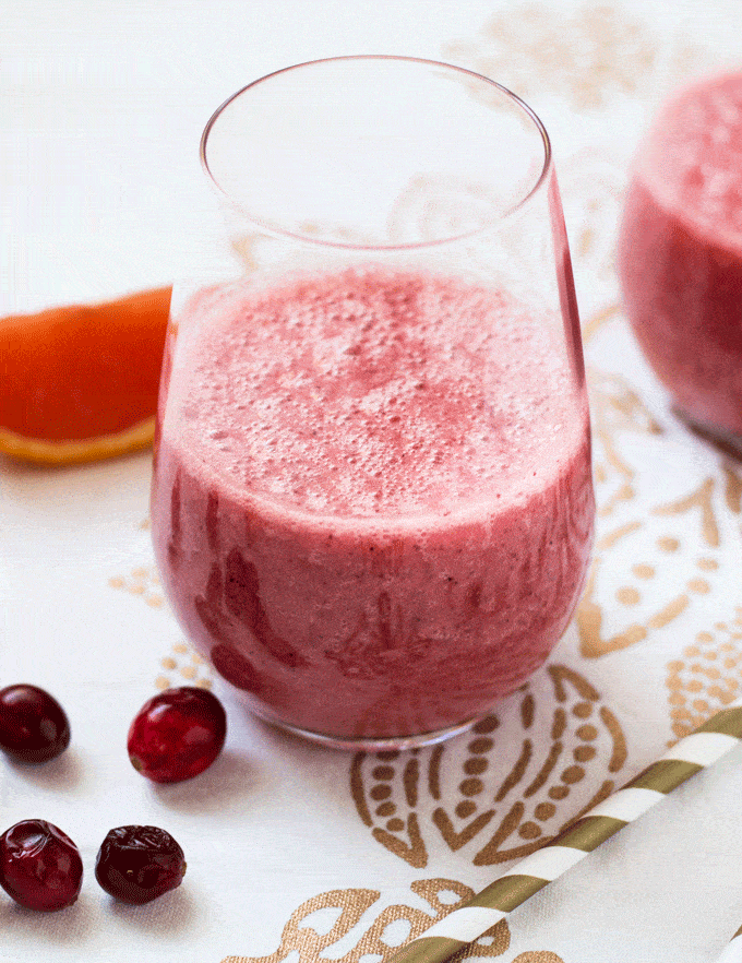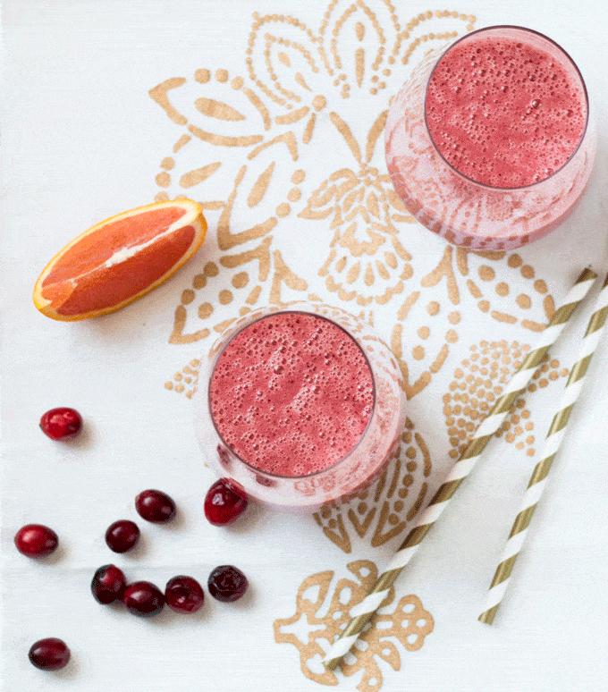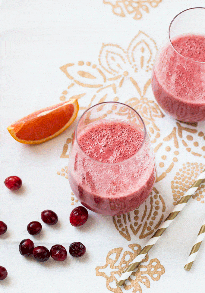 I have been sculling these Orange and Fresh Cranberry Smoothies like they are going out of season! Well…technically they are, as fresh cranberries seem to disappear once the Holiday season is over…so it’s fitting. A tip: just after the Holidays, cranberries tend to be dirt cheap, so be sure to grab a few bags and pop them in the freezer. They come in handy throughout the year, especially if you want to try your hand at a cranberry smoothie 🙂