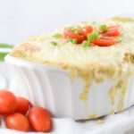 Super easy to bring together, this pesto chicken and cheese dip recipe is the perfect meal to serve up when you aren't in the mood for cooking. Simply add all the ingredients together in a casserole dish and give it a good stir, pop it in the oven until everything is melty and bubbly, and you are good to go. Serve with chips, crackers, or veggie sticks to make it a complete meal. Perfect for a movie night in, as a low-carb alternative to nachos, or a super cheesy comfort meal for the whole family.